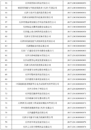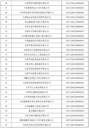 天津市2017年第一批入庫(kù)國(guó)家科技型中小企業(yè)名單公告