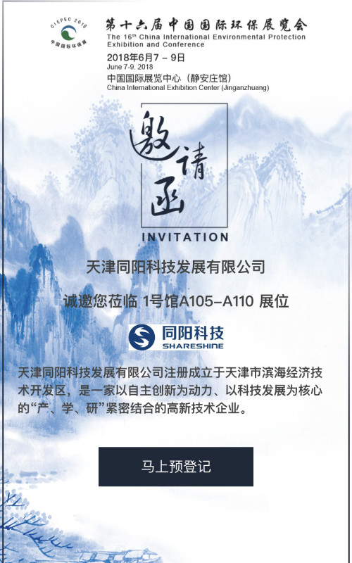 同陽(yáng)科技邀您參加第十六屆中國(guó)國(guó)際環(huán)保展(CIEPEC 2018)