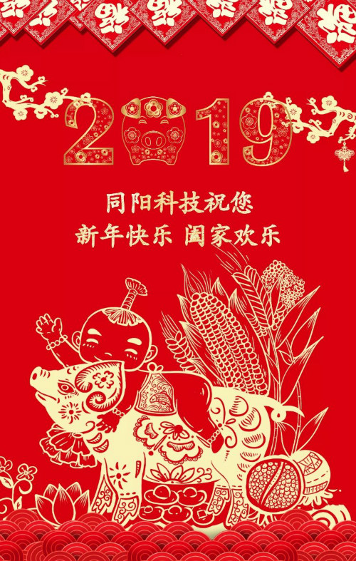 同陽科技給您拜年啦! 更新時間:2019-02-04 點擊:20500 所屬欄目:公司新聞 Update Time:2019-02-04 Hits:20500 Belong Column:News 瑞犬辭舊歲,金豬迎新春。愿您在新的一年,抱著平安,擁著健康,揣著幸福,攜著快樂,摟著溫馨,享著甜蜜,帶著財運(yùn),拽著吉祥,邁著歡快的步子踏入新的一年,天津同陽科技發(fā)展有限公司恭祝大家新春快樂!