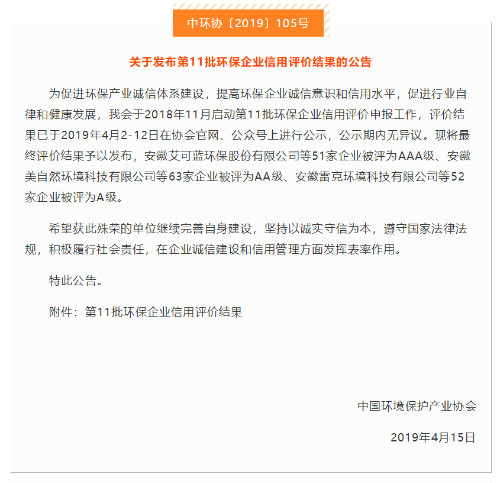 更新時(shí)間: 點(diǎn)擊:15098 所屬欄目:公司新聞 Update Time: Hits:15098 Belong Column:News近日,中國環(huán)境保護(hù)產(chǎn)業(yè)協(xié)會公示了“第11批中國環(huán)境保護(hù)產(chǎn)業(yè)行業(yè)企業(yè)信用等級評價(jià)結(jié)果”,天津同陽科技發(fā)展有限公司榮獲中國環(huán)保企業(yè)“AAA級信用企業(yè)”稱號。