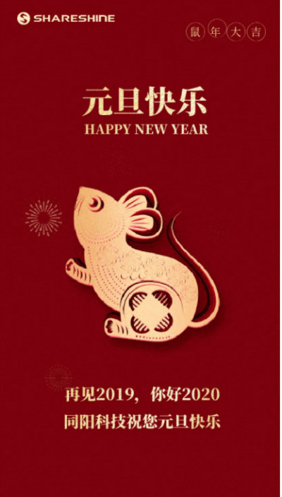 同陽科技祝您元旦快樂! 更新時間:2020-01-01 點擊:17563 所屬欄目:公司新聞 Update Time:2020-01-01 Hits:17563 Belong Column:News 再見2019 你好2020 在新的一年里 祝您 闔家幸福 萬事如意 同陽科技將一如既往地用行動來印證理想 2020年 只爭朝夕,不負(fù)韶華 心向往之,行必能至